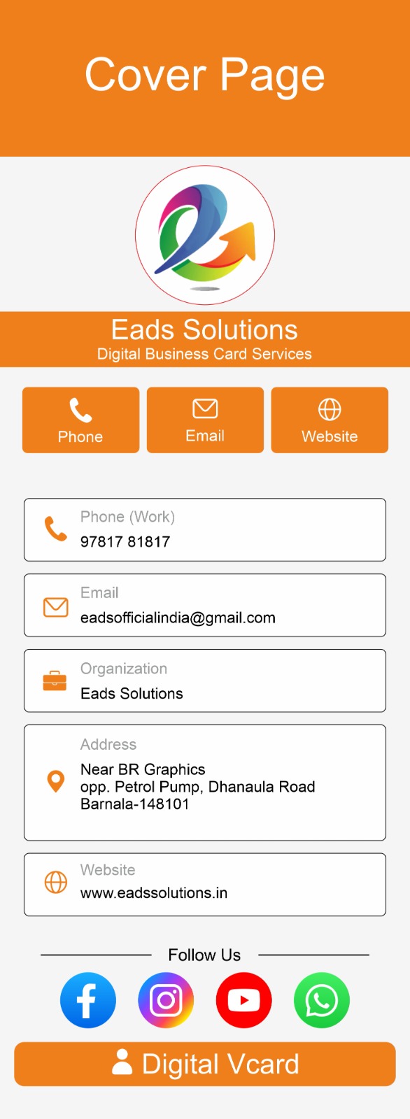 Digital Business Card, a modern technique to share your contact details. Design your Business Card Online in a simple and easy way. With eads solutions you can easily customize your own Digital Visiting Cards elegantly. It is very easy to manage as you can edit it anytime anywhere.